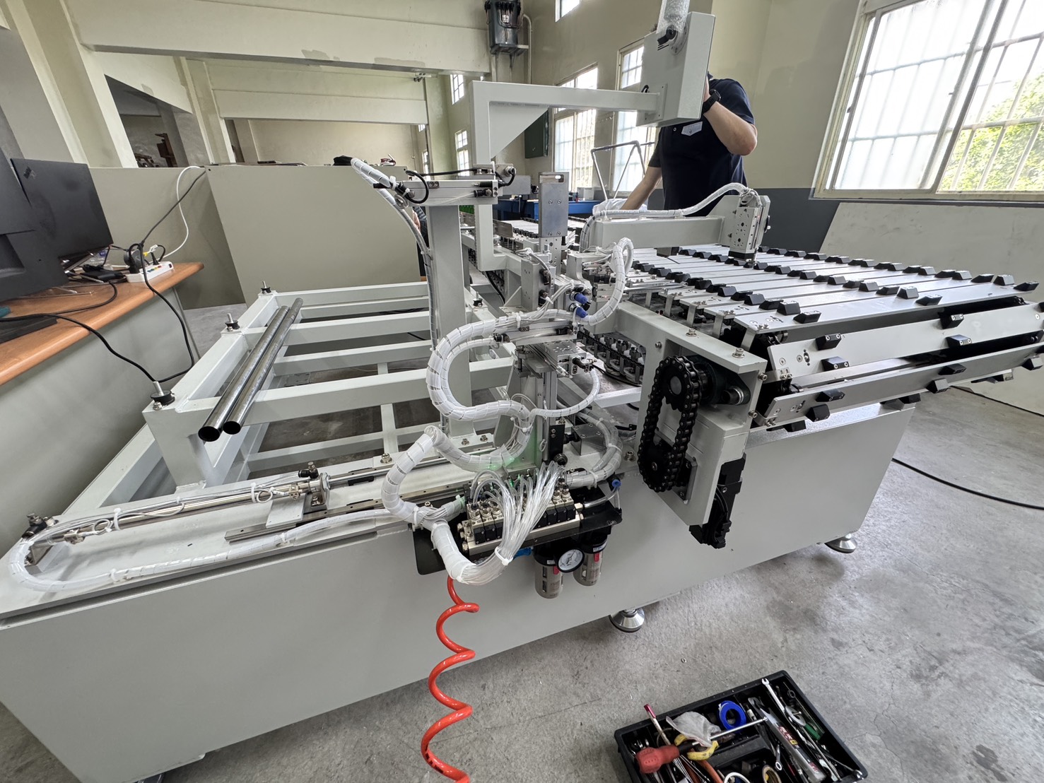 本設備為專為提升生產效率與穩定品質所設計的自動化組裝機械,整合氣壓元件與PLC智慧控制系統,可實現連續、自動化的送料與夾取動作,降低人力需求並減少操作錯誤。