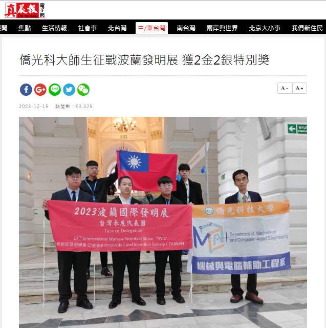 此次參賽的作品中,僑光科技大學機械與電腦輔助工程系教授朱賢儒、林昱呈指導師生研發團隊楊富翔、蔡育倫、張宇辰等同學憑藉著創新作品「被動式膝關節外骨骼機器人」,榮獲金牌獎,同時該作品也獲得泰國特別獎。研發團隊所設計的被動式膝關節輔助外骨骼,可供使用者穿戴於膝關節位置,為人體膝關節提供適當的輔助力量。這對於長時間承受膝關節負載的工作者、需要長時間進行重複性動作的勞工、軍人或運動員來說,具有極大的實用價值。這不僅有助於減少膝關節的負擔,預防職業傷害的發生,同時也能夠為需要進行腳部復健的患者提供有效的復健訓練。朱賢儒表示,團隊在研發過程中不僅培育了醫療輔具設計方面的專業人才,還與業界新創公司進行了產學合作,協助建立輔具研發的專業能量。這項成果不僅代表著團隊的卓越創新,更展現了學術界與產業界共同攜手推動科技發展的良好合作模式。